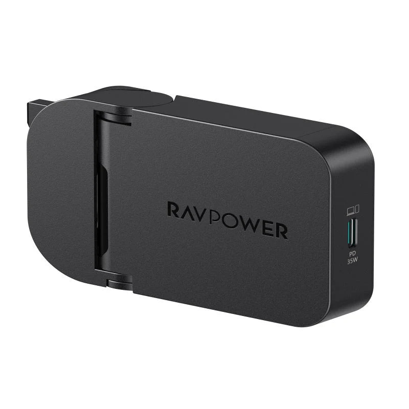 The Ravpower RP-PC1082 PD Pioneer 35W USB-C Wall Charger in black delivers efficient and reliable power for a wide range of devices. Equipped with Power Delivery (PD) technology, it provides fast charging up to 35W, ideal for smartphones, tablets, and compatible laptops.