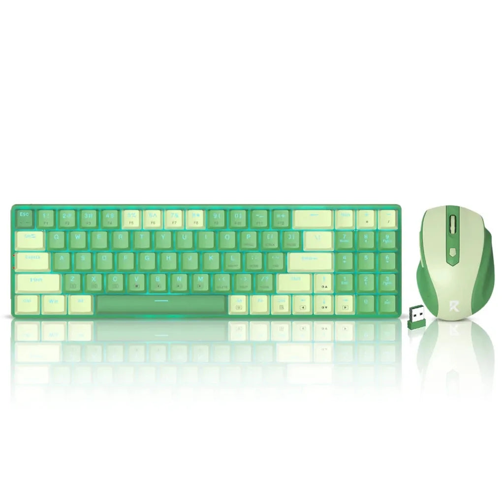 The REDRAGON BS8772 Wireless Gaming Keyboard and Mouse Combo in Green delivers a visually striking peripheral setup without sacrificing performance or functionality. This matched duo combines wireless convenience with gaming-grade specifications, featuring a distinctive green colorway that stands out in any gaming environment.