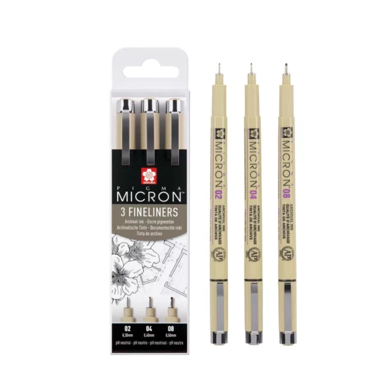 The Sakura Pigma Micron 05 Set 3 Bk+Gr is a professional-quality pen set cherished by artists, illustrators, and designers for its precision and reliability. Featuring three pens in black and gray inks, each equipped with the 0.45mm micron tip, it delivers fine, consistent lines ideal for detailed work and technical drawing. The archival-quality, waterproof, and fade-resistant pigment ink ensures long-lasting artwork that withstands the test of time. This set provides versatility and control for creating intricate illustrations, lettering, and sketches with expert precision and clarity.