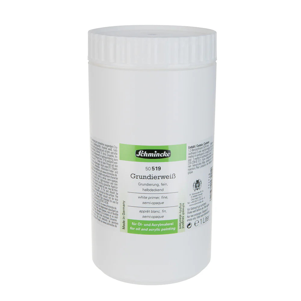 Schmincke White Primer Fine is a professional-grade priming solution designed for artists and craftspeople seeking superior surface preparation. This 1000ml container of premium white primer delivers exceptional coverage and adhesion properties, making it ideal for preparing various substrates before painting or finishing work. The fine formulation ensures smooth application without grittiness, allowing for precise control and even distribution across your working surface. Schmincke's reputation for quality extends to this primer, which offers excellent opacity and quick-drying characteristics. Whether you're preparing canvas, wood, or other materials for acrylic or oil painting, this versatile primer creates an optimal foundation that enhances color vibrancy and extends the longevity of your finished artwork. The generous 1000ml volume provides excellent value for both professional studios and serious hobbyists.