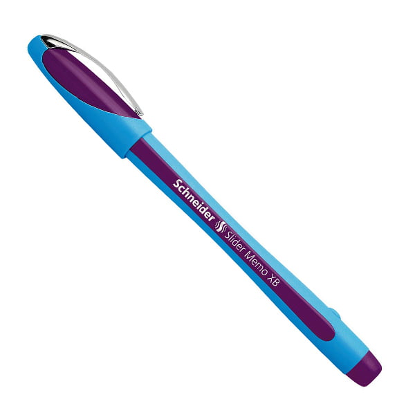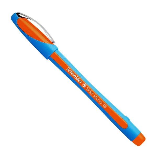 Slider Edge XB Memo with Viscoglide Ink Technology for extraordinary easy and gliding writing. 1.4 mm line width. Rubberized three-edged barrel for relaxed writing without hand fatigue. Three edged barrel ensures the pen does not roll off the desk. Ink dries quickly even when highlighted. Waterproof blue ink.