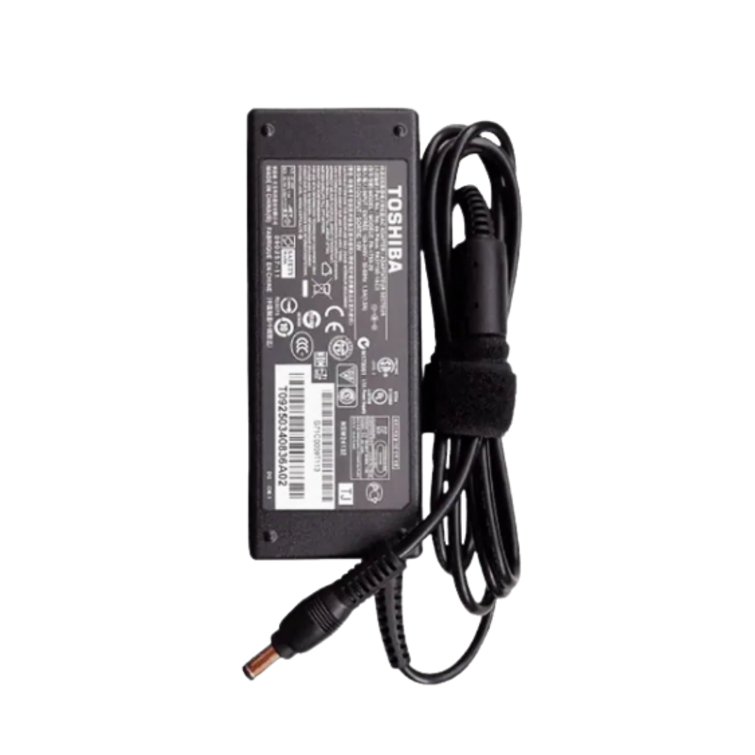 The Toshiba 45W 19V-2.37A laptop charger delivers reliable power management for compatible Toshiba notebook systems. Engineered with precise voltage and amperage specifications (19V-2.37A), this charger ensures optimal performance while protecting your device from power fluctuations. The 5.5×2.5mm connector provides a secure, stable connection that minimizes accidental disconnection during work sessions. This genuine Toshiba power adapter comes complete with a durable power cable, making it an essential replacement or backup charging solution. The 45W output balances efficiency with rapid charging capability, suitable for everyday computing tasks and extended work sessions. Model 7S01559 is designed to meet Toshiba's stringent quality standards, offering dependable performance for your portable computing needs.