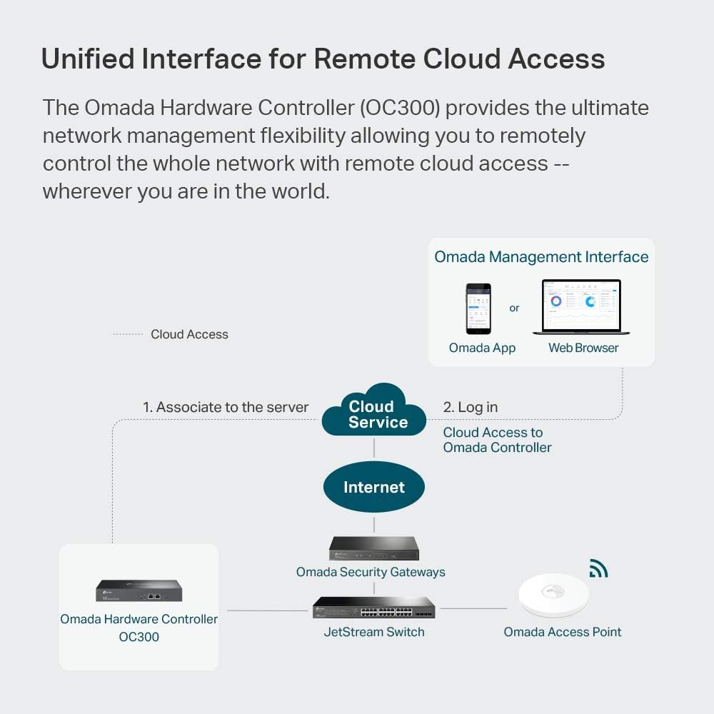 OC300, the professional on-premises hardware controller for the Omada Software Defined Networking (SDN) platform, provides 100% centralized management of Omada access points, JetStream switches, and Omada routers—all controlled from a single interface.