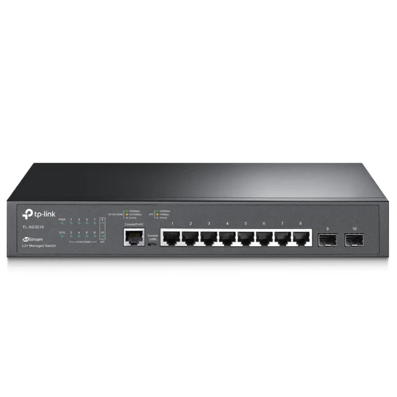 TP-LINK JetStream gigabit L2 managed switch TL-SG3210 provides 8 10/100/1000Mbps ports. The switch provides high performance, enterprise-level QoS, advanced security strategies and rich layer 2 management features. Moreover, the switch also comes equipped with 2 gigabit SFP slots, expanding your network flexibly. TL-SG3210 is the cost-effective network solution for the ideal small and medium business.