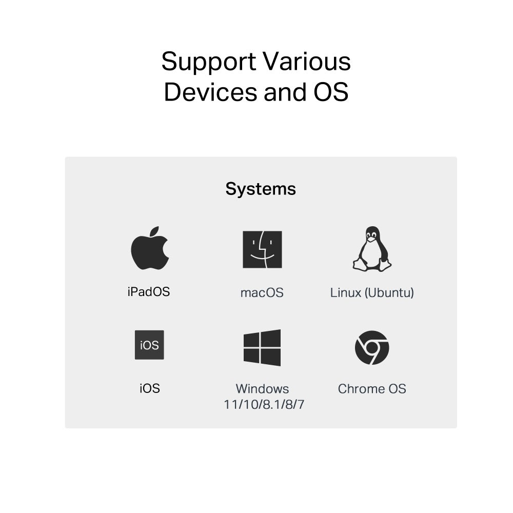 | Supported Systems | Windows 11/10/8.1/8/7 MacOS iPadOS Chrome OS Linux OS iOS |