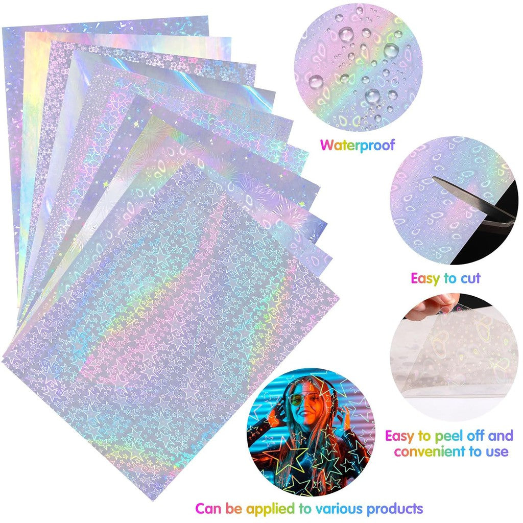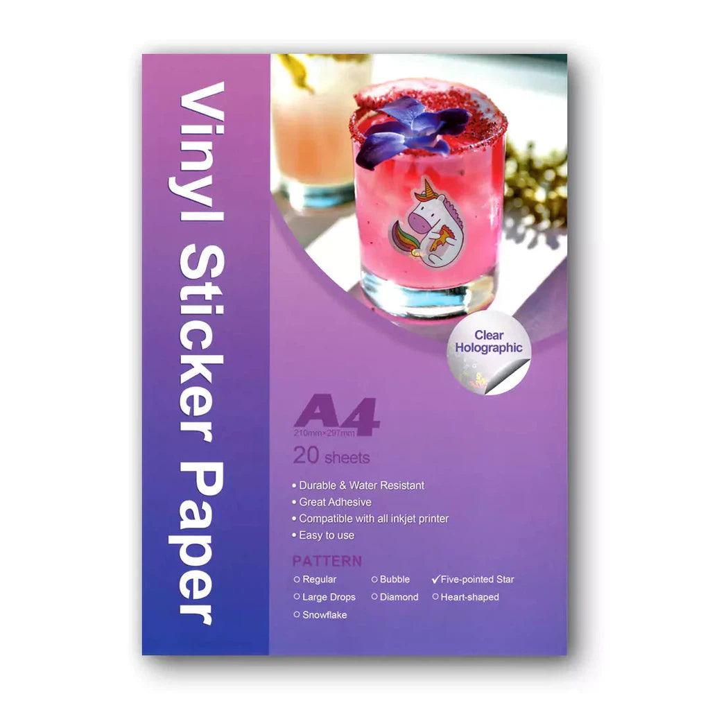 This Transparent Holographic PET Vinyl Sticker Paper with a stunning Five-pointed Star design is perfect for adding a touch of sparkle and creativity to your projects. Made from high-quality PET material, this vinyl sticker paper is both durable and water-resistant, making it ideal for use on a wide range of surfaces and applications, including items that may be exposed to the elements. The five-pointed star holographic design provides a unique, shimmering effect that catches the light, creating eye-catching projects.