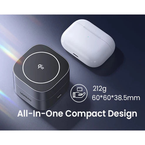 The UGREEN 2-in-1 Magnetic Wireless Charger 35316 delivers robust 15W wireless charging power, designed to efficiently charge two devices simultaneously with precision and ease. Equipped with advanced magnetic alignment technology, it ensures your compatible smartphones and accessories snap into the optimal position for maximum charging efficiency, reducing energy waste and heat generation. This charger supports a broad range of Qi-enabled devices, including the latest smartphones and wireless earbuds, making it a versatile and practical solution for everyday use. Its sleek, minimalist design complements any workspace or bedside table, while its compact form factor minimizes clutter. Built with high-quality materials and intelligent safety features, the UGREEN 2-in-1 Magnetic Wireless Charger 35316 offers reliable, fast, and convenient charging, ideal for users who demand both performance and convenience in their wireless charging setup.
