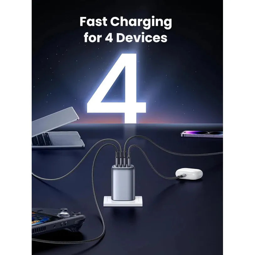 UGREEN Nexode 100W 4-Port GaN Fast Charger UK (Space Grey) X565 is a powerhouse solution for charging multiple devices simultaneously. Featuring cutting-edge GaN technology, this charger delivers exceptional efficiency while maintaining a compact footprint. With four versatile ports—combining USB-C and USB-A connections—it accommodates smartphones, tablets, laptops, and accessories all at once. The 100W total power output intelligently distributes across ports, ensuring optimal charging speeds for each connected device. Its space grey finish reflects premium build quality and modern design sensibilities. The UK plug configuration provides direct compatibility with local electrical standards. Advanced thermal management prevents overheating during extended use, while integrated safety protocols protect against overcurrent and short circuits. Whether at home, in the office, or while traveling, this multi-port charger eliminates the need for multiple adapters. Experience unprecedented convenience and efficiency with professional-grade charging technology.