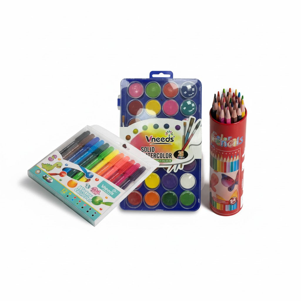 The Vneed Color Bundle includes the Vneed 28 Color Watercolor Set, featuring professional-grade paints ideal for artists seeking unlimited creativity. This comprehensive collection offers a wide spectrum of richly pigmented colors that blend smoothly and evenly, enabling precise control and vibrant results. Formulated for excellent lightfastness and lasting color intensity, these watercolors are perfect for detailed work, washes, and mixed-media applications. Designed to meet the demands of both beginners and experienced artists, this set enhances artistic expression through superior quality and versatility, providing endless possibilities for creative exploration.