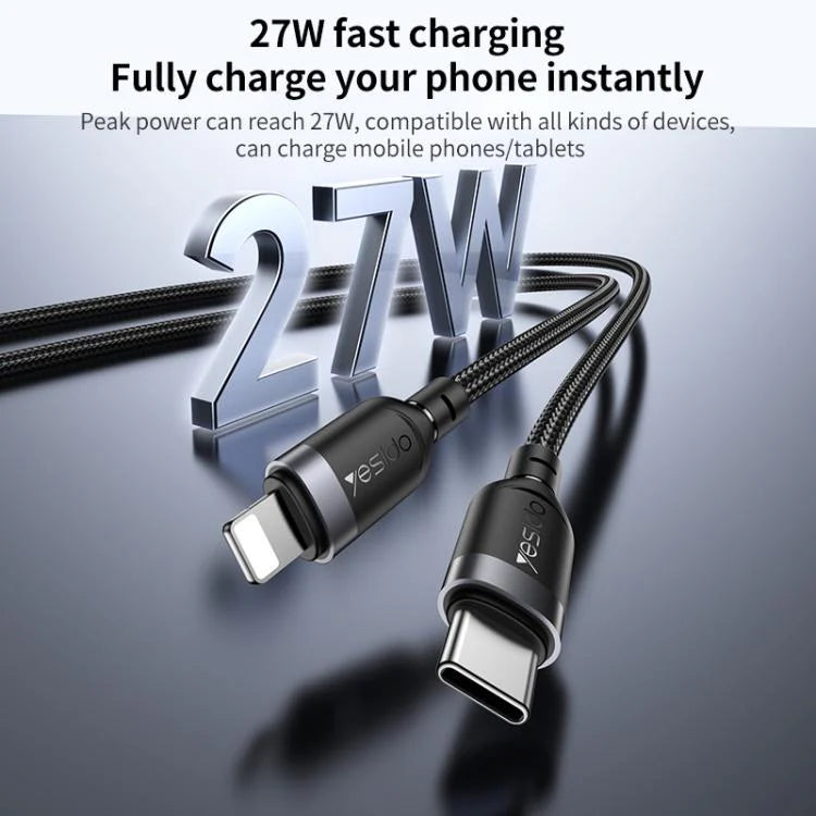 Power up your devices with confidence using the Yesido CA193 – a high-performance Type-C to Lightning data cable built for fast charging and stable data transfer. With a durable aluminum alloy shell and extra-long 3-meter length, it's perfect for extended setups at home, office, or in-car use. The 27W output supports fast charging for iPhones and iPads with Type-C adapters.