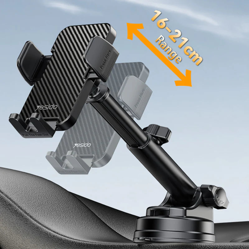 Upgrade your driving experience with the Yesido C173 Carbon Fiber Phone Holder, a premium car mounting solution that combines sleek aesthetics with superior functionality. Designed for both style and performance, this holder features a carbon fiber textured finish with anti-slip silicone grips to keep your device secure while driving.